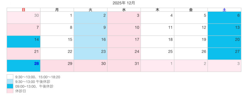 2025/12/29(月)〜2026/1/4(日)までお休みとさせていただきます。 2025.12.28 Tweet 2025/12/29(月)〜2026/1/4(日)までお休みとさせていただきます。 Tweet お盆休み 2025/8/11(月・祝)〜8/17(日)臨時休診です。前の記事 最近のお知らせ お知らせ一覧 2025/12/29(月)〜2026/1/4(日)までお休みとさせていただきます。 2025.12.28 お盆休み 2025/8/11(月・祝)〜8/17(日)臨時休診です。 2025.08.9 ゴールデンウィークの休診。5/3(土、祝)〜5/7(水)休診です 2025.05.2 2025/3/30(日)〜4/2(水)までお休みとさせていただきます。 2025.03.31 2024/12/29(日)〜2025/1/5(日)までお休みとさせていただきます。 2023.12.28 2022/12/28(水)〜2023/1/4(水)までお休みとさせていただきます。 2022.12.30 お盆休みについて 8/10(水)〜8/17(水)の間お盆休み 2022.08.9 2022年のゴールデンウィークのお休みについて 2022.04.13 ホームページ追加・更新しました。 2021.04.20 オンライン診療に対応しました。 2020.06.10 カテゴリカテゴリ カテゴリーを選択 YouTube (1) クリニック (315) AGA(男性型脱毛症) (16) ワクチン (69) 予約 (42) 疾患 (36) 薬剤 (12) 診察日 (29) ホームページ・ブログ (47) 家族 (375) 【stay home】 (7) お勧めの子供の遊び場 (89) お弁当 (6) パッチリ二重(長女、高校3年生) (77) 元気(長男、小学校2年生) (190) 旅行 (8) 目力(次女、高校1年生) (95) 未分類 (1) 皮膚科医のつぶやき (643) 【糖質自粛メニュー】 (26) お役立ち情報 (16) お得情報 (13) ダイエット (3) 商品レビュー (8) 美味しいお店 (71) 日本ブログ村